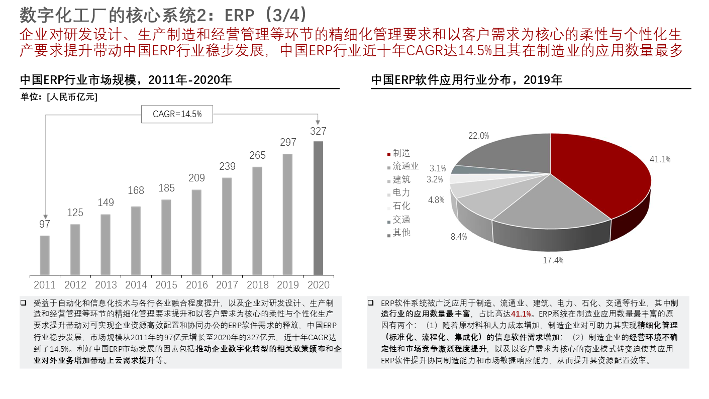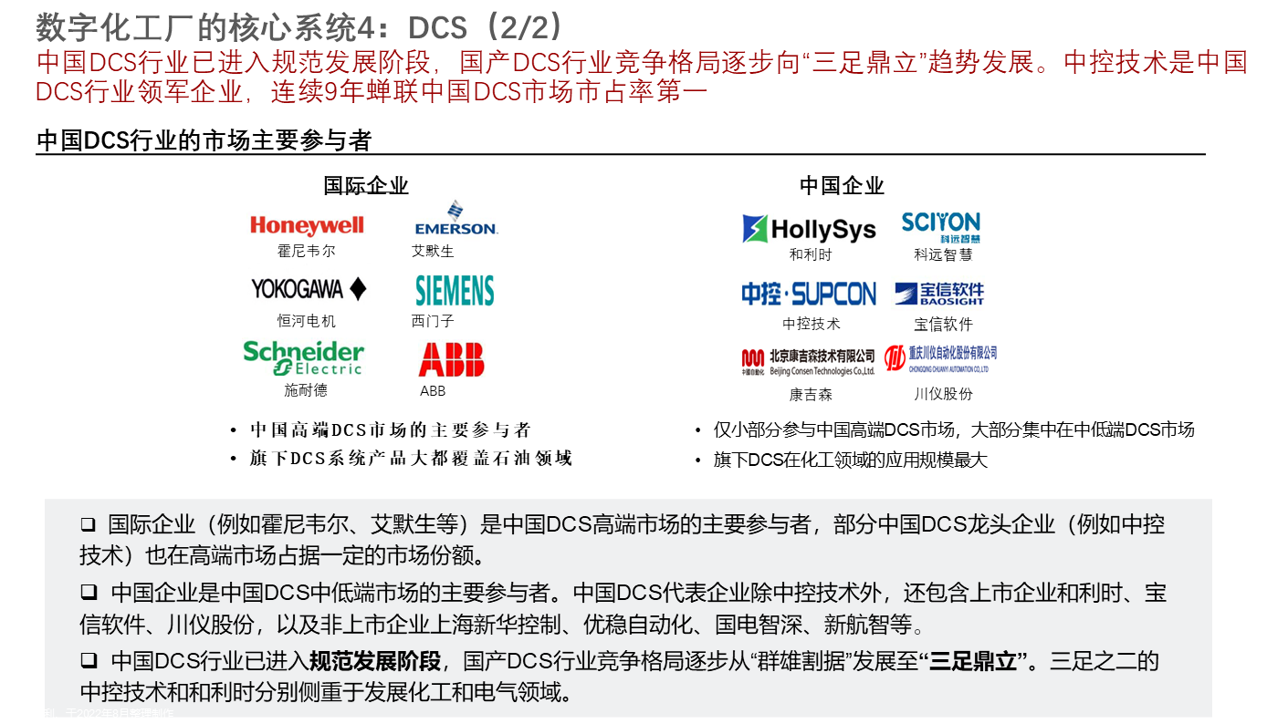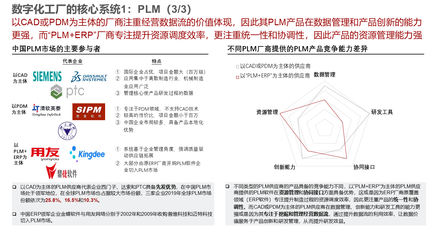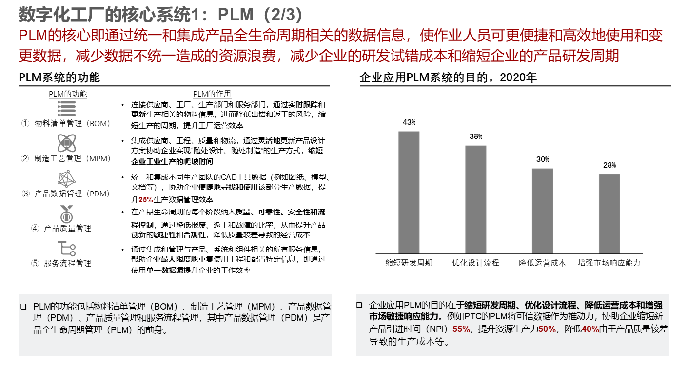 接着详细介绍五大核心系统:PLM 覆盖产品全生命周期,助力企业协同研发、优化决策;ERP 整合企业资源,提升管理能力;WMS 高效管理物料资源,改善仓储现状;DCS 广泛应用于多行业,实现分级控制;MOM 作为 MES 升级版,优化企业运营,提升生产效率和质量。同时分析了各系统市场参与者和竞争格局。