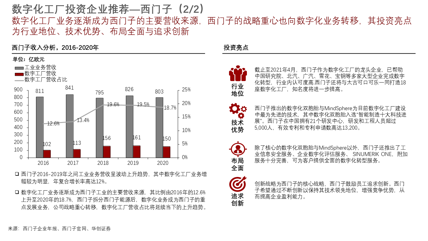 最后列举企业应用案例,如西门子凭借技术优势助力企业数字化转型,其数字化工厂业务营收占比上升;步科股份为中小微企业提供定制化解决方案,数字化工厂业务增速快、毛利率高;爱柯迪推进数字化工厂建设,人均产出和设备利用率提升。这些案例展示了数字化工厂的实践成果和价值,为相关企业提供了参考范例 。