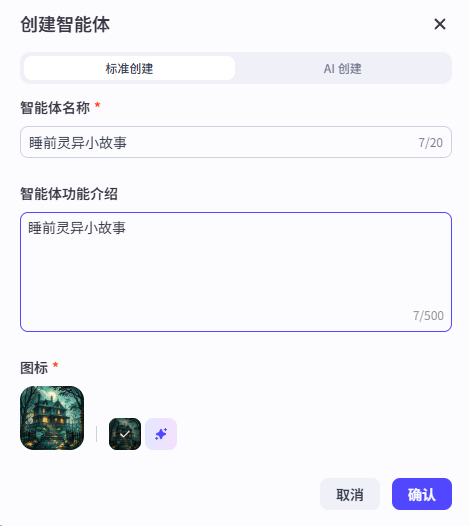 点击右上角【创建】,选择【创建智能体】