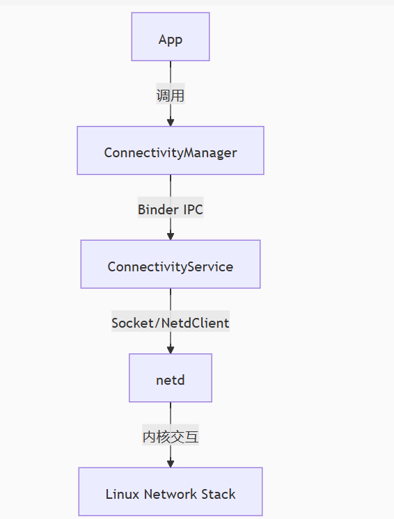 防火墙配置(iptables):netd 负责配置和管理防火墙规则。它通过 iptables 命令来处理传入和传出的网络流量。