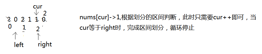 nums[cur]==2,swap(nums[cur],nums[--right])