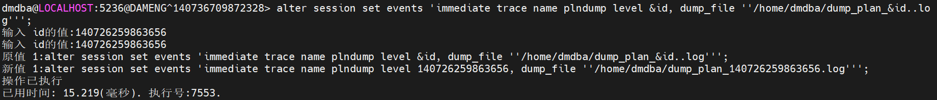 alter session set events 'immediate trace name plndump level &id, dump_file ''/home/dmdba/dump_plan_&id..log''';