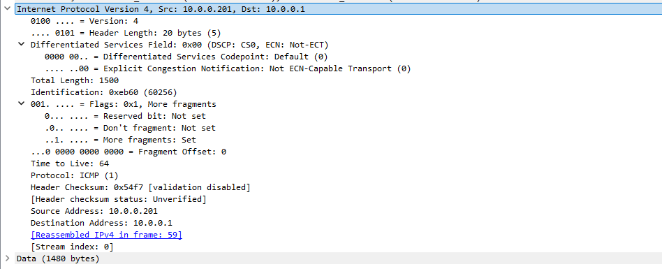 Internet Protocol Version 4, Src: 10.0.0.201, Dst: 10.0.0.1