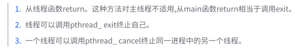 3. 如果thread线程是⾃⼰调⽤pthread_exit终⽌的,value_ptr所指向的单元存放的是传给 pthread_exit的参数。