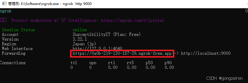 通过这个网址就能访问到自己本地的对应的http://localhost:9000网址,可以理解为ngrok往你的地址发送了个请求