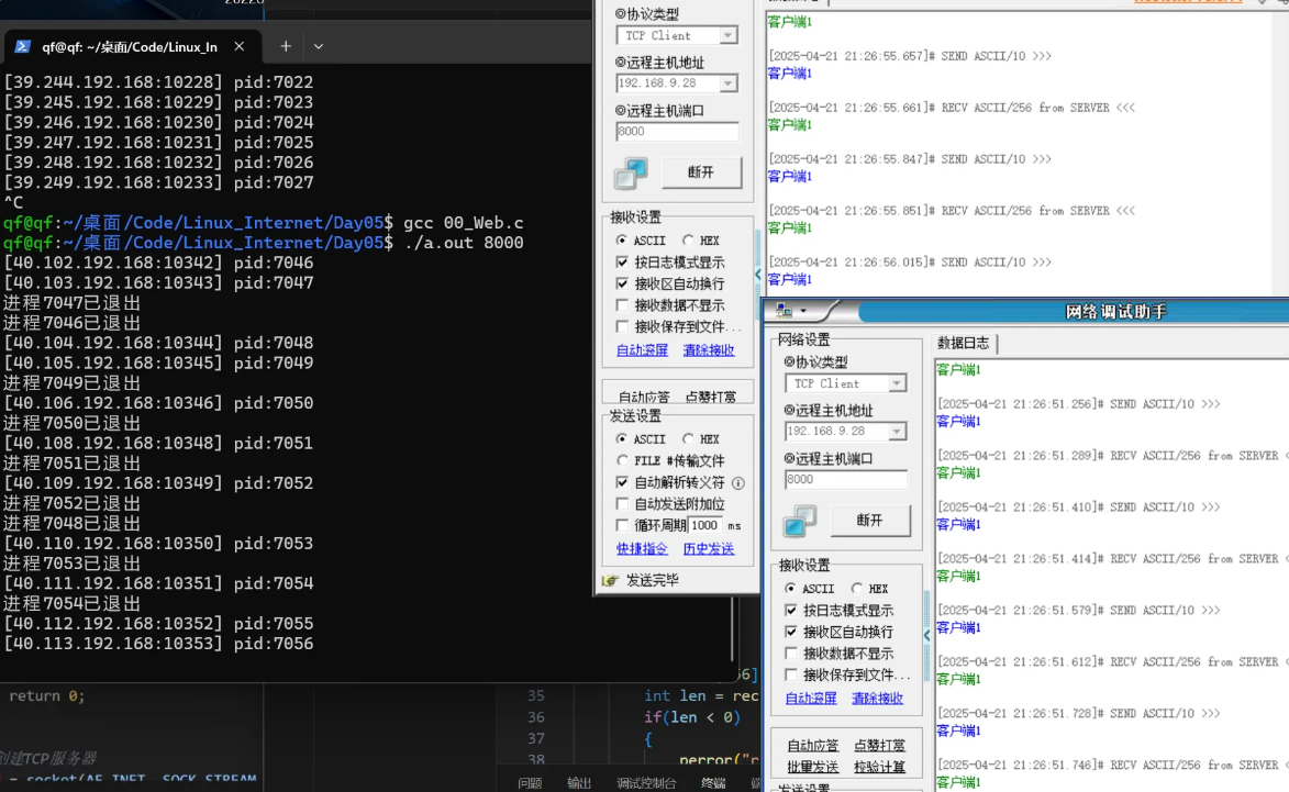 // 遍历一下 已连接客户端的IP,端口号,以及为其分配的进程号