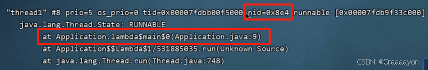 再在jstack查询出的日志中定位到该8e4线程的信息,也就可以找到是哪行代码出现问题