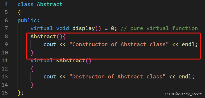 cout << "Constructor of Abstract class" << endl;