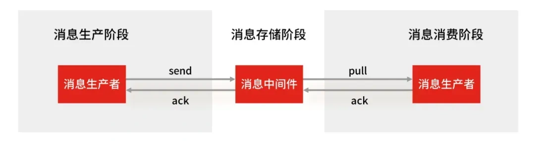 消息生产阶段:只要能正常接收到MQ中间件的ack确认响应,就表示发送成功,所以只要处理号消息的返回值和异常,如果返回异常则进行消息重发,那么这个阶段是不会出现消息丢失的。