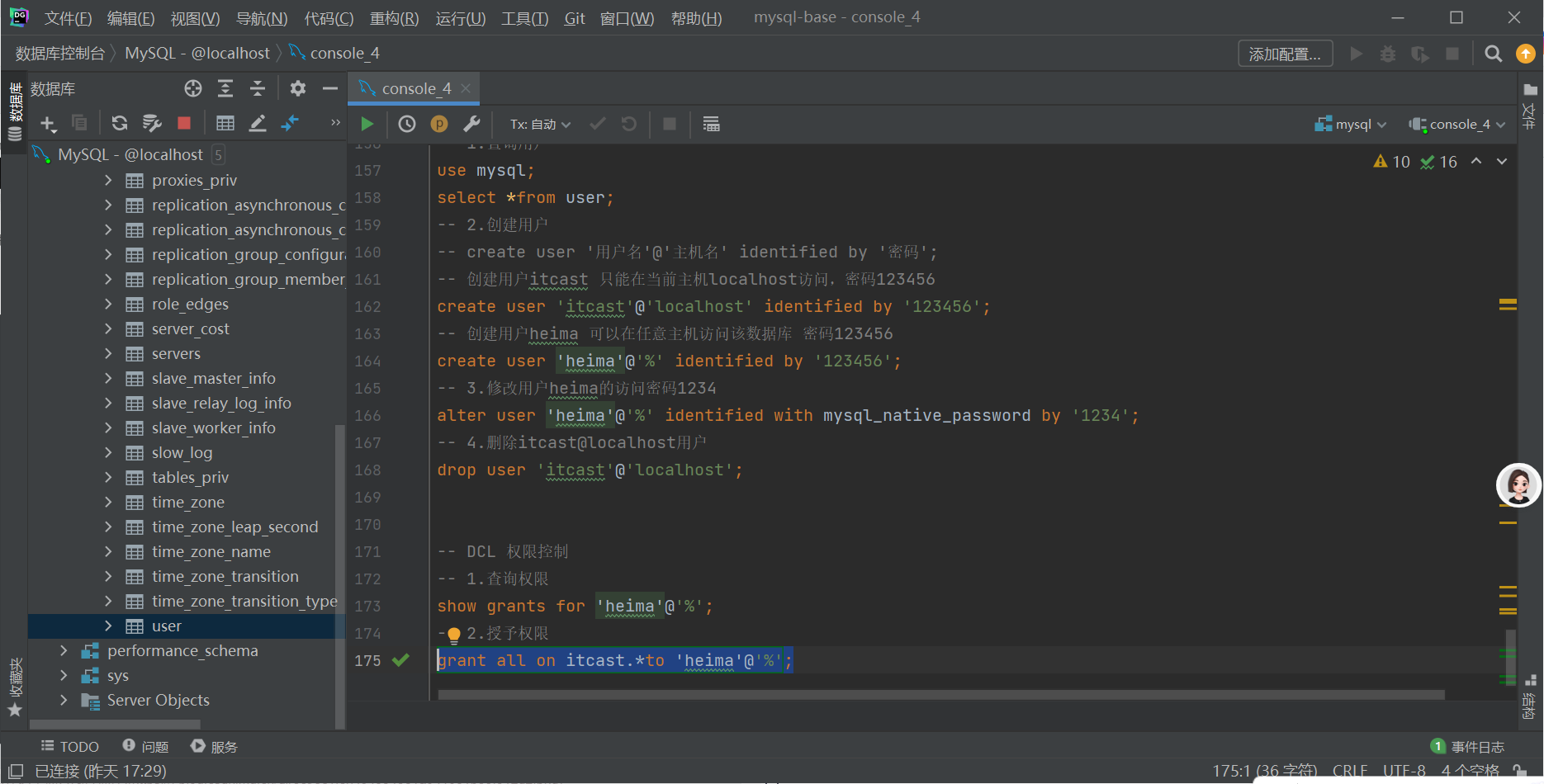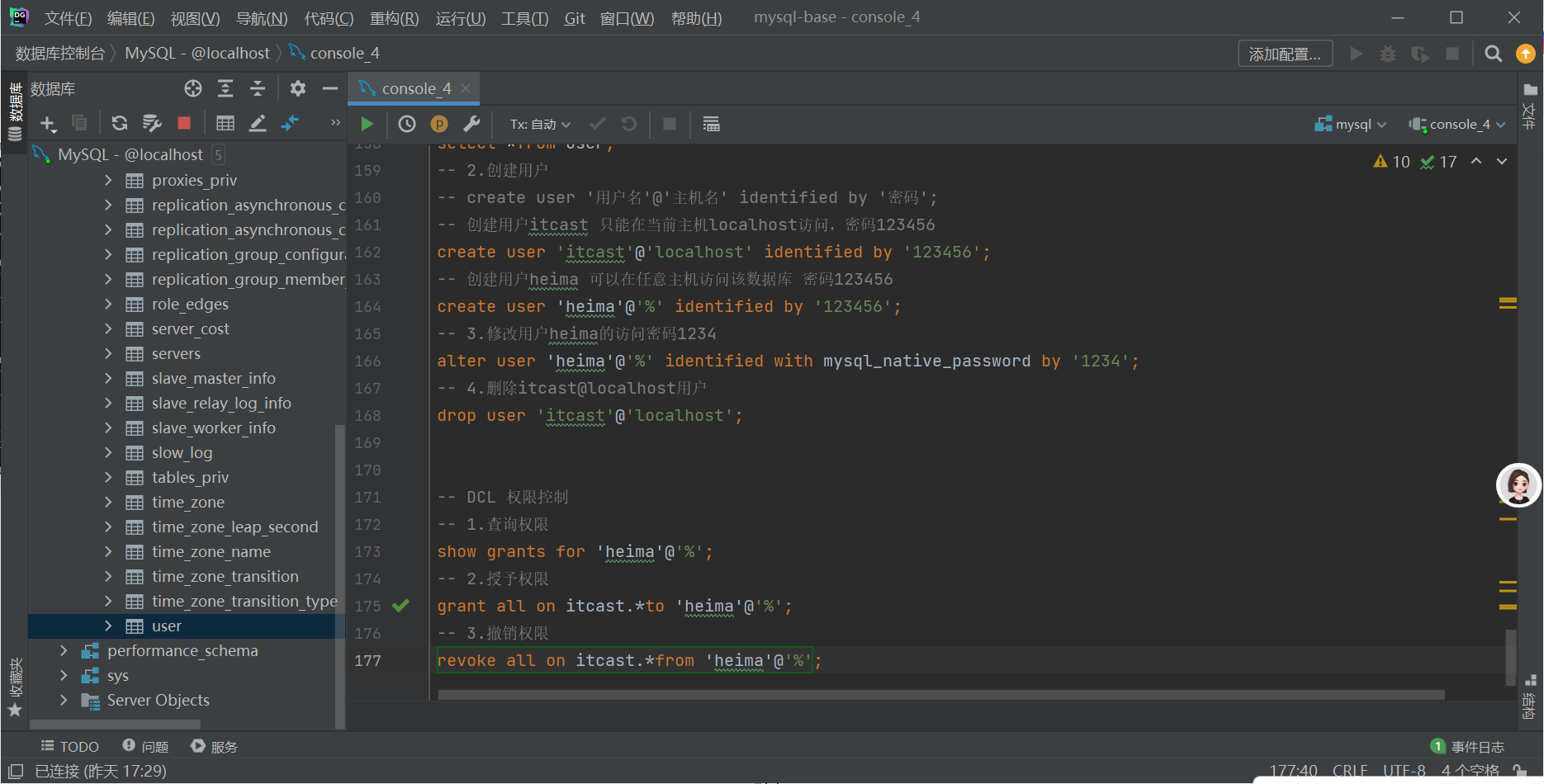 -- DCL 权限控制