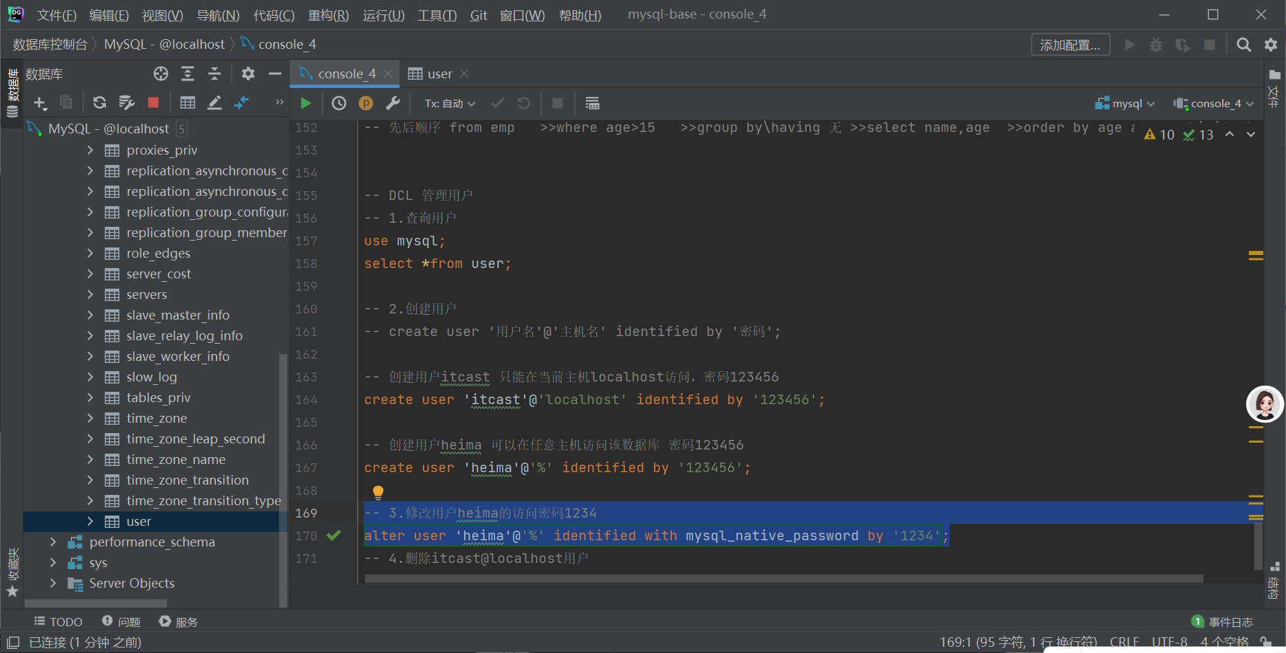 -- DCL 管理用户