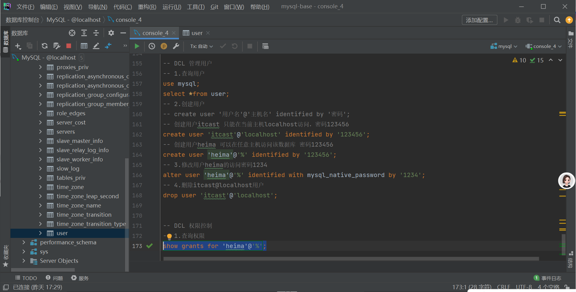 drop user 'itcast'@'localhost';
