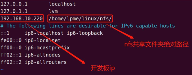 在/etc/exports 中设置/home/flx/linux/nfs为共享目录,