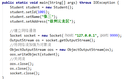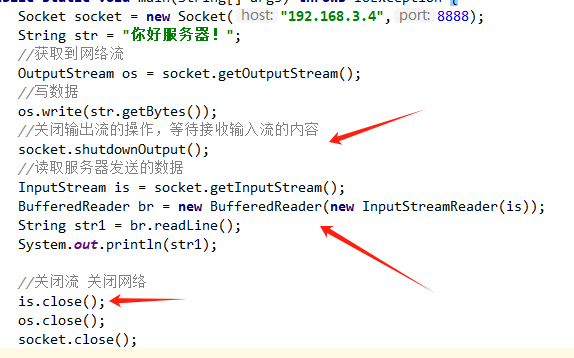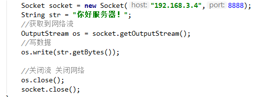 首先使用Socket类创建对象,然后输入目标ip地址和Sever中预设的端口。这样,我们基础的连接就完成了。