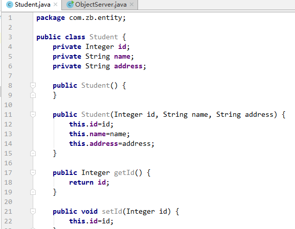 在myTcpServer中创建一个com.zb.entity包,创建一个Student类: