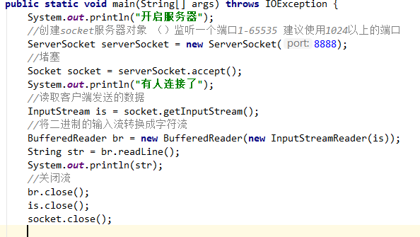 ()内要填写的是一个端口,什么是端口呢?假设此时我们的电脑通过ip地址连接了,那么我用微信给你发送的信息你需要用微信来接收,不能歪到QQ去接收,那么此时监听微信的端口就可以锁定你的微信,从而不让信息流向错误位置的地方。端口最大为1-65535。建议使用1024以上的端口,因为1024以下的端口有可能被系统占用。