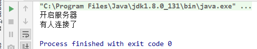 我们发现 “有人连接了” 并没有被打印,因为并没有人来连接,所以被accept方法堵住了。