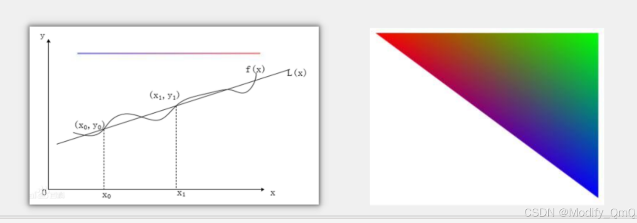 在逐顶点渲染中,前面讲的光照或颜色的计算是在顶点着色器中进行的,顶点着色器运行结束后,每一个顶点都有一个颜色值,在片元着色器执行前,webGL会对这些顶点的颜色数据进行线性插值,从而得到每个片元处的颜色。这就是webGL绘制三角形的原理,为什么只给了3个顶点的颜色值就能得到一个彩色的三角形的缘故,即三角形中其他点(片元)的颜色值都是通过这给定的3个顶点的颜色值通过线性插值得到的。