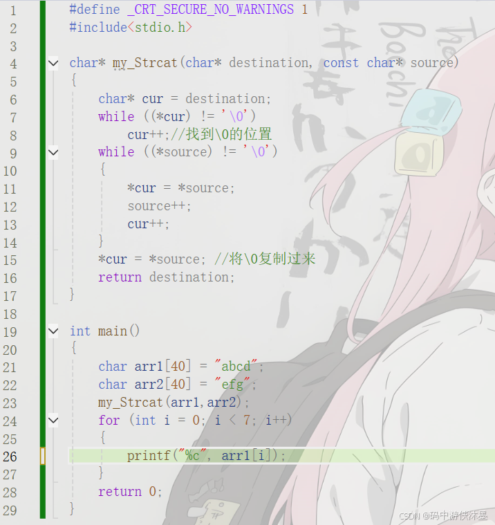 然后创建好一个函数char * my_Strcat ( char * destination, const char * source )