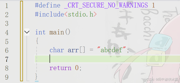 因为是计算C语言字符串的长度,所以先要有字符串,至于怎么创建字符串,看个人习惯了,我喜欢直接写,有的人可能喜欢大括号那种,大同小异。