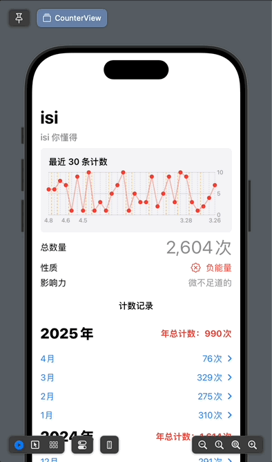 Text("年总计数:\(yearData.totalCount)\(counter.unit ?? "")")