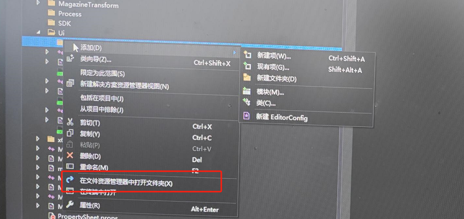 这个时候右击他,就出现了在文件资源管理器 中打开文件夹这个选项。这个