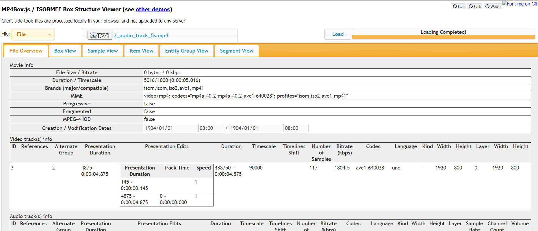 MP4Box.js - JavaScript MP4 Reader/Fragmenter (gpac.github.io)