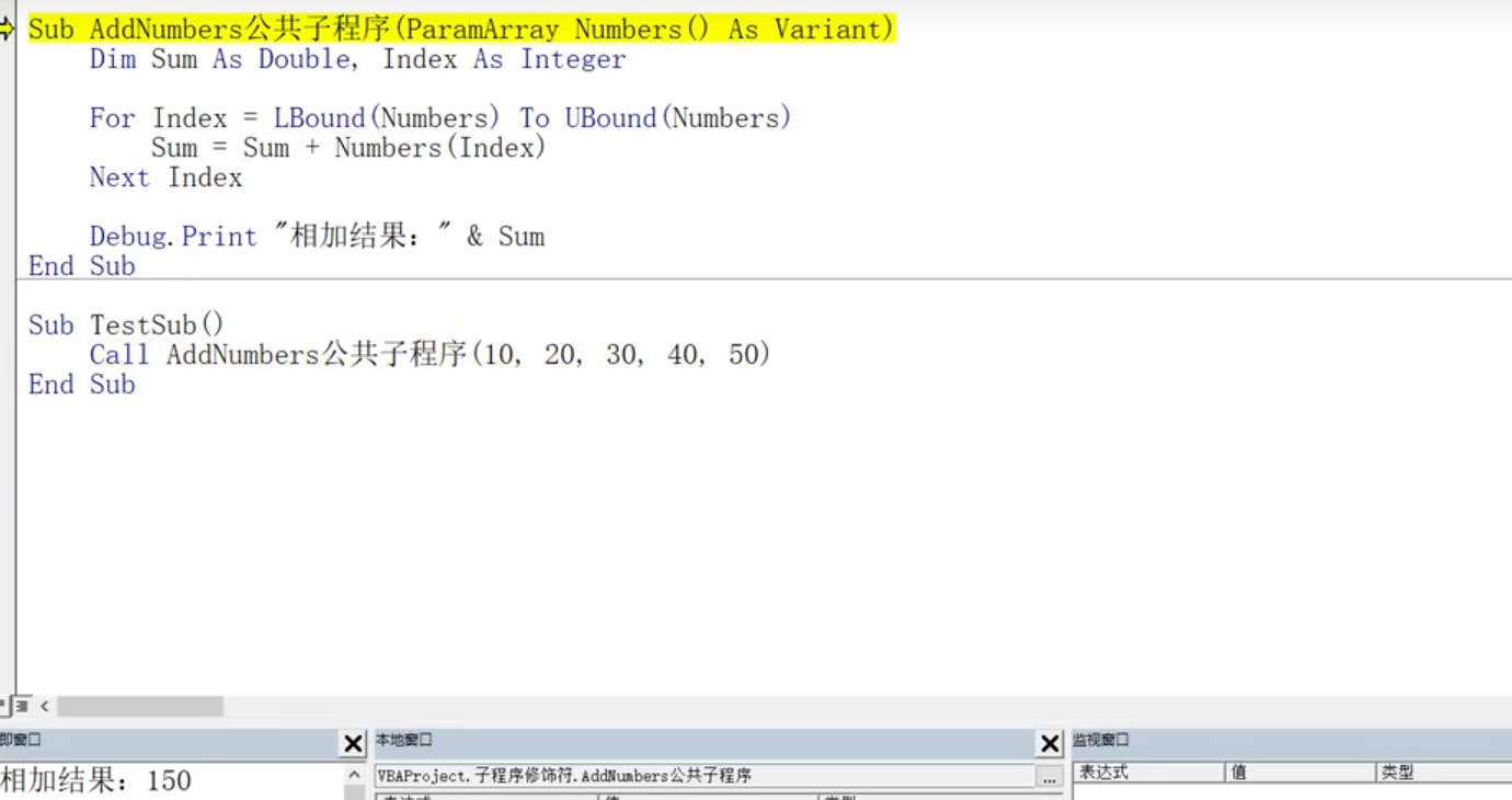 Sub AddNumbers可变参数(ParamArray Numbers() As Variant)