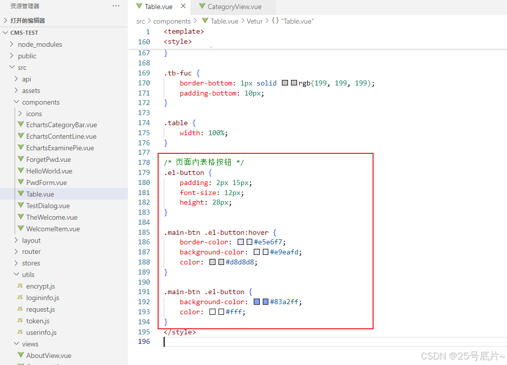 去掉原本表格内容的背景色,增加main-btn样式下的el-button的背景色和悬停效果