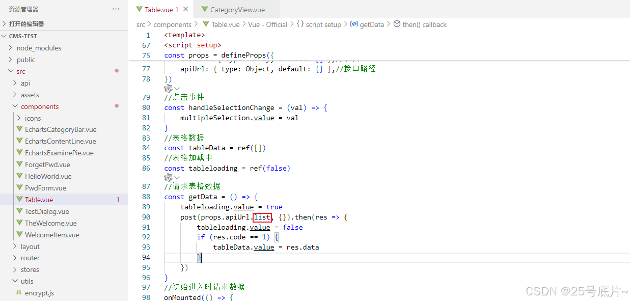 将父页面传递的接口-查询全部表格数据,名称修改为list