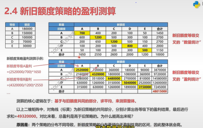 根据新旧额度画图,计算盈利变化情况,基于与旧额度共同的部分求平均来测算整体,如下: