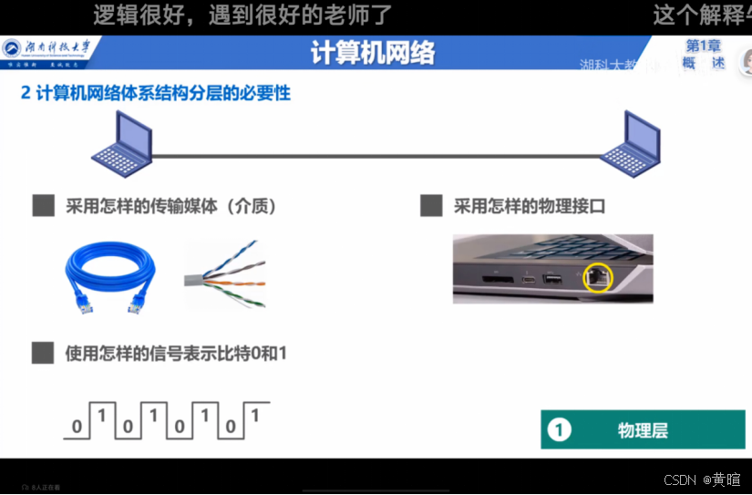 - 问题场景:两台主机通过网线直连时,需确定传输媒体(如双绞线)、物理接口(如RJ-45)、信号编码(如用高低电平表示0/1)。