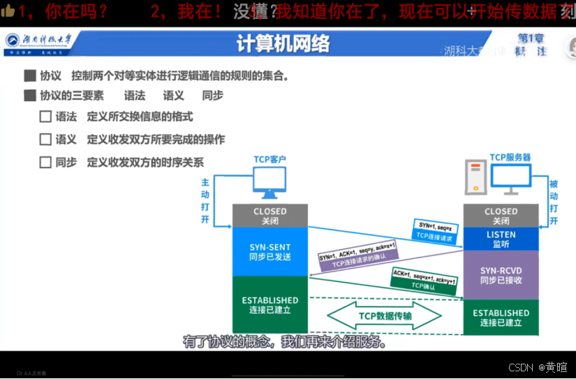 同步:时序关系与状态转换(如TCP三次握手建立连接的顺序)。