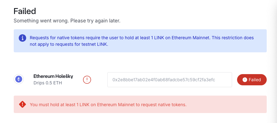 2.You must hold at least 1 LINK on Ethereum Mainnet to request native tokens.