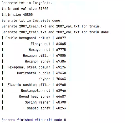控制台输出每个类别的信息则运行成功,