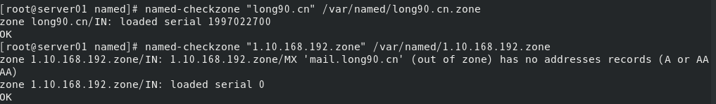使用named-checkconf /etc/named.conf 可以检查语法是否正确!