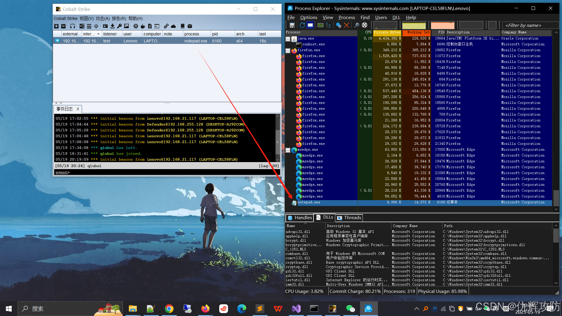运行测试,成功上线并执行命令,进程镂空(傀儡进程)绕过DF!