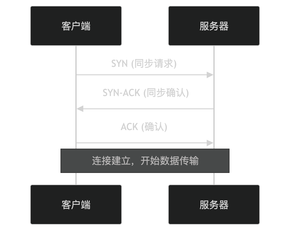 - SYN-ACK:服务器收到 SYN 包后,回复一个 SYN-ACK 包(同步确认),表示同意建立连接。