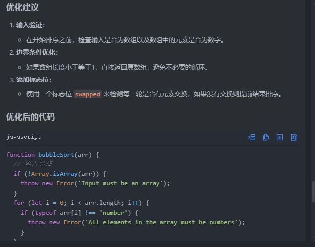 AI不仅能给出审查结果,提供优化思路,甚至还能给出优化的代码: