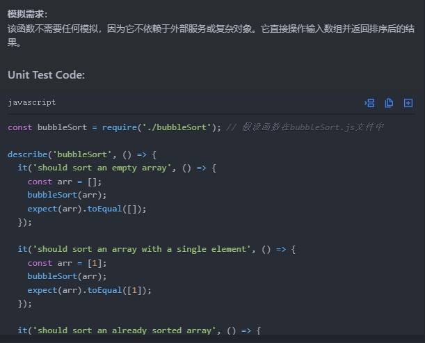 对于JavaScript的代码,有些工具函数(类)是可以通过单元测试来确保代码可靠性的(比如某些算法)如何编写质量优秀的单元测试代码对于并非测试专业的前端程序员来说是一个挑战,不过我们可以通过AI来帮我们进行代码测试。