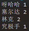 vector<string> s = {"塞尔达","林克","究极手","林克","呀哈哈","塞尔达"};