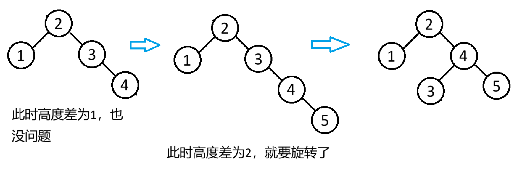 在平衡二叉搜索树中,若根节点的左右子树高度差超过1,就会发生旋转