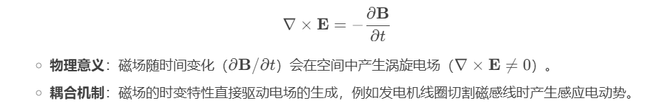 麦克斯韦方程组的四个方程中,法拉第定律和安培-麦克斯韦定律直接体现了电磁耦合的动力学机制: