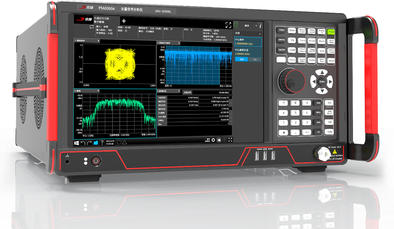 以PSA6000A为例,PSA6000A是玖锦科技自主研发的一款高性能的矢量信号分析仪,其频率范围覆盖2 Hz至50 GHz,最大分析带宽可达2 GHz,最大实时分析带宽为600 MHz。这使得PSA6000A能够轻松应对各种复杂的信号分析任务,无论是高频通信信号还是宽带雷达信号,都能精准地进行测量和分析。