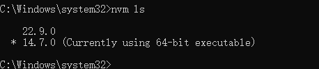 再使用nvm ls可查看版本,使用nvm use 版本号即可使用