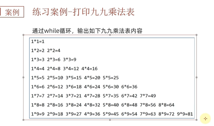 # 一共有9行,外层循环的条件就是:i<=9[i=1]