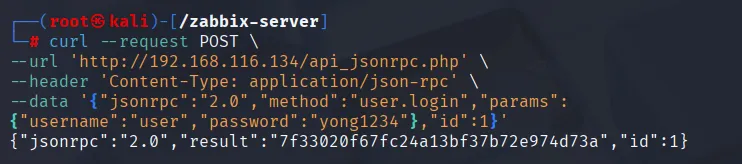 --data '{"jsonrpc":"2.0","method":"user.login","params":