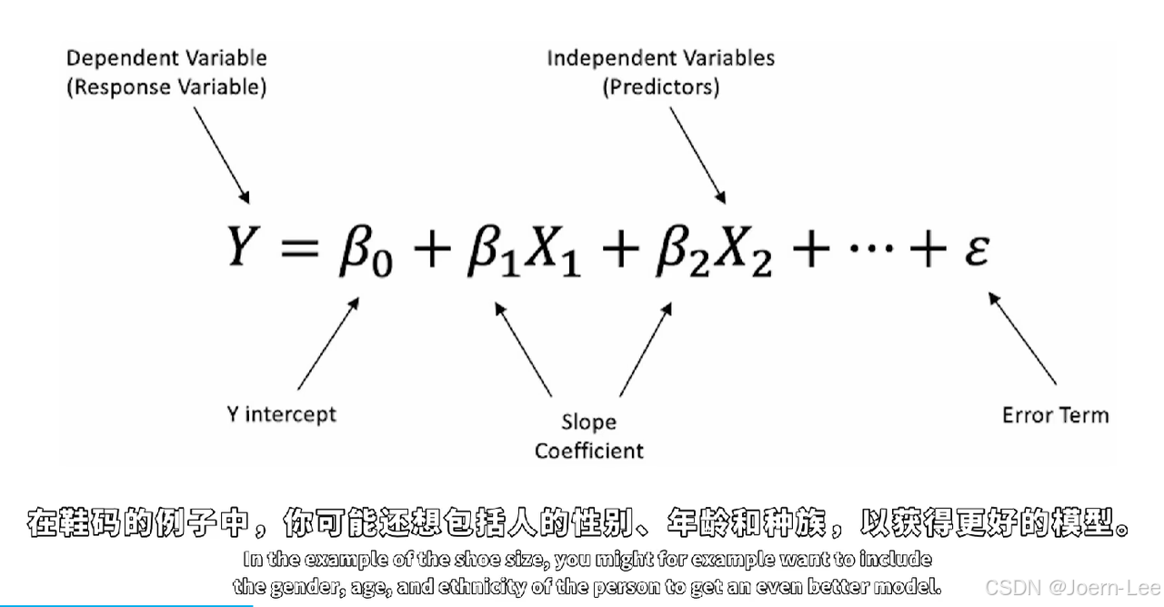核心思想:找到一条直线(或超平面),使得预测值与真实值的误差最小。