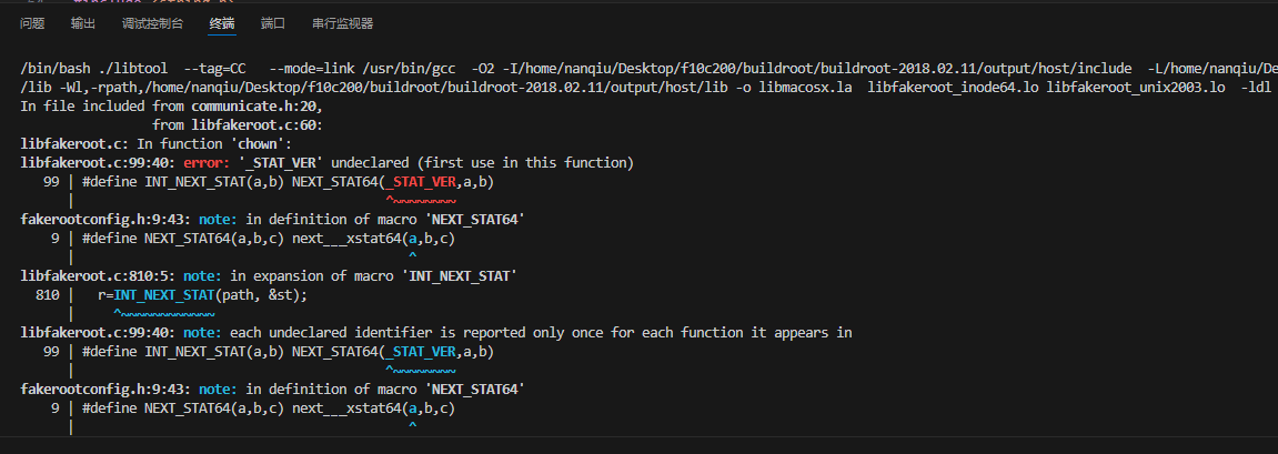 libfakeroot.c:99:40: note: each undeclared identifier is reported only once for each function it appears in