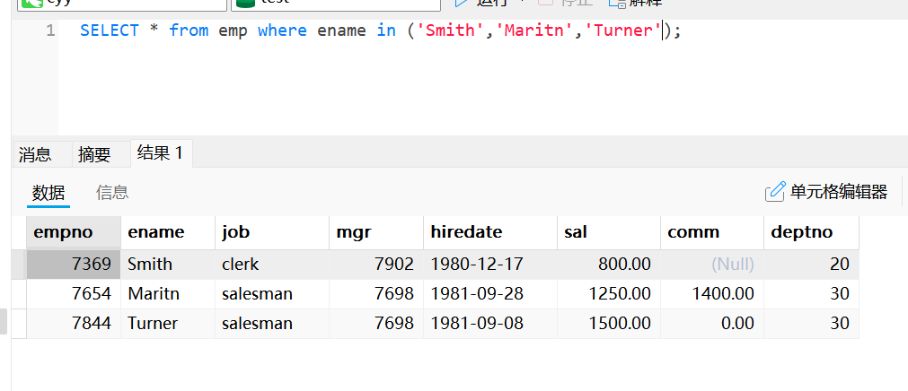select * from emp where ename in ('Smith','Maritn','Turner');